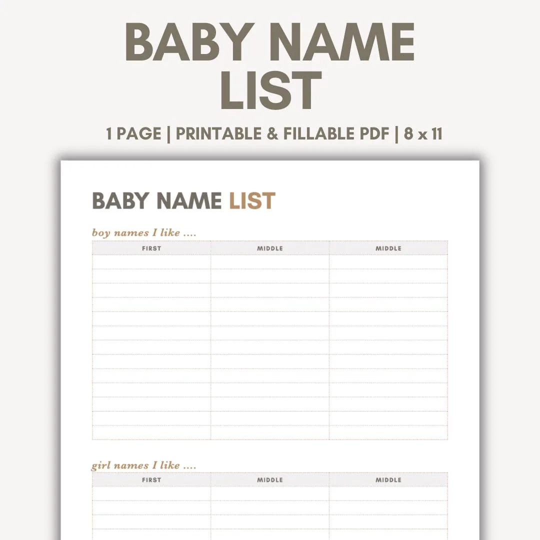 Baby Names List Tracker Baby Names List Printable Baby Names List Planner Baby Names List PDF Baby Names List Checklist Baby Names List Etsy
