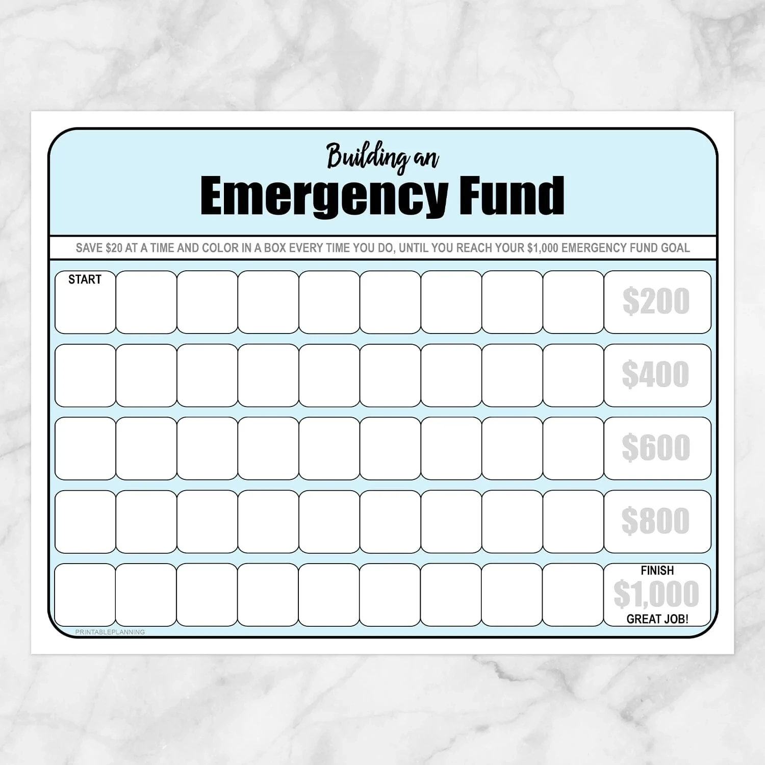With a free printable emergency fund chart, you can track your savings progress in a fun and visual way. You can color in sections as you reach certain milestones or fill in dollar amounts as you save more money.