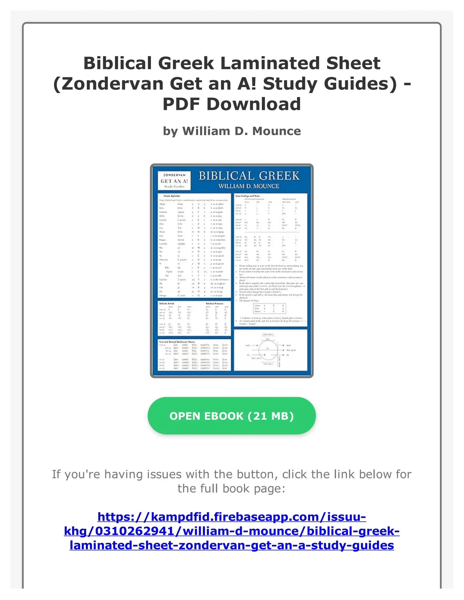 Biblical Greek Laminated Sheet Zondervan Get An A Study Guides Mounce William D 9780310262947 Amazon Books
