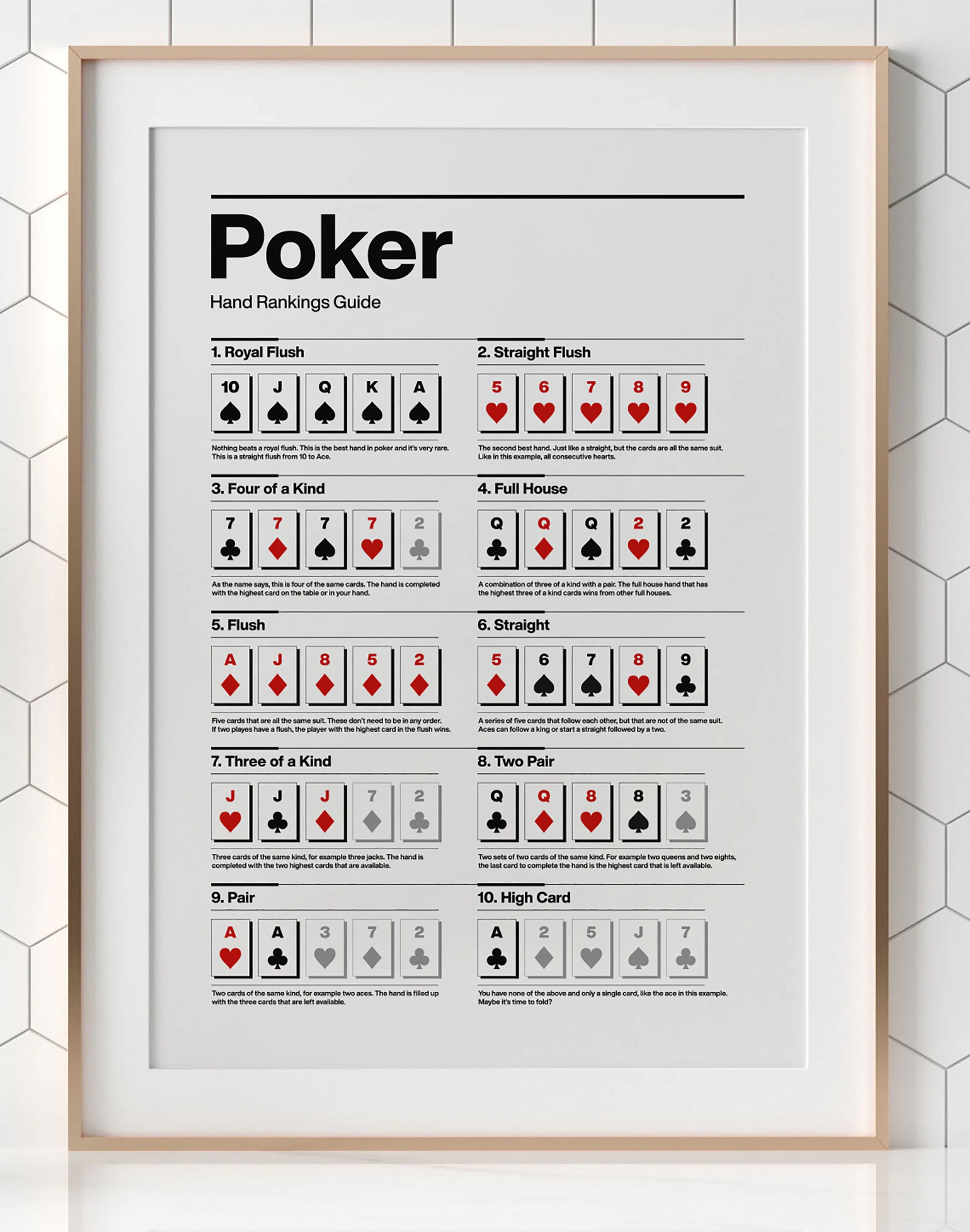 Gr01 poker Hand Rankings Poker Guide Poker Room Decor Husband Gift Game Room Decor Playing Cards Poker Cheat Sheet White Background Etsy