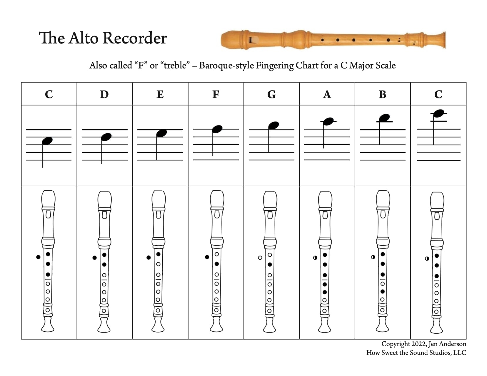 Printable Alto Recorder Fingering Chart