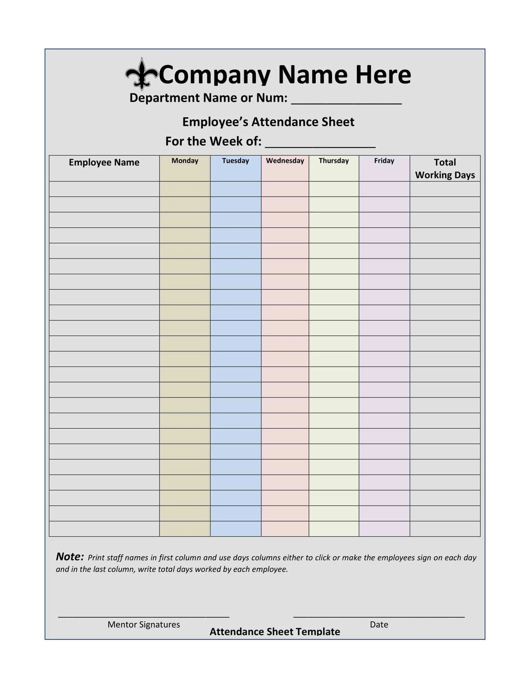 Free Printable Attendance Sheet Templates Word Excel PDF