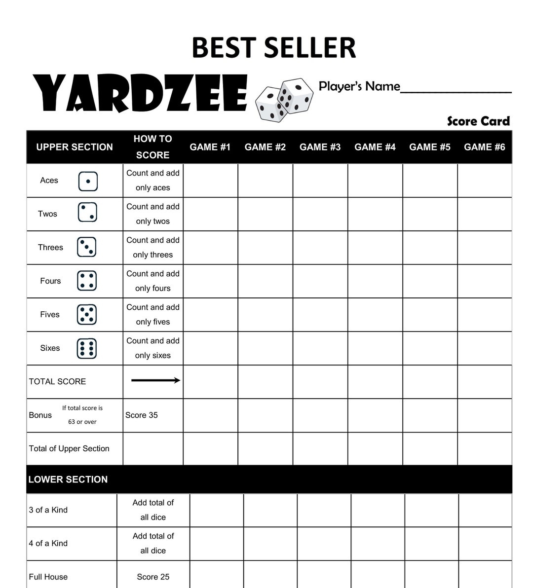 So, next time you’re gearing up for a game of Yardzee, don’t forget to download and print your free printable full-sheet score sheet. It’s a game-changer that will make scoring a breeze and allow you to focus on having fun with your fellow players. Happy rolling!