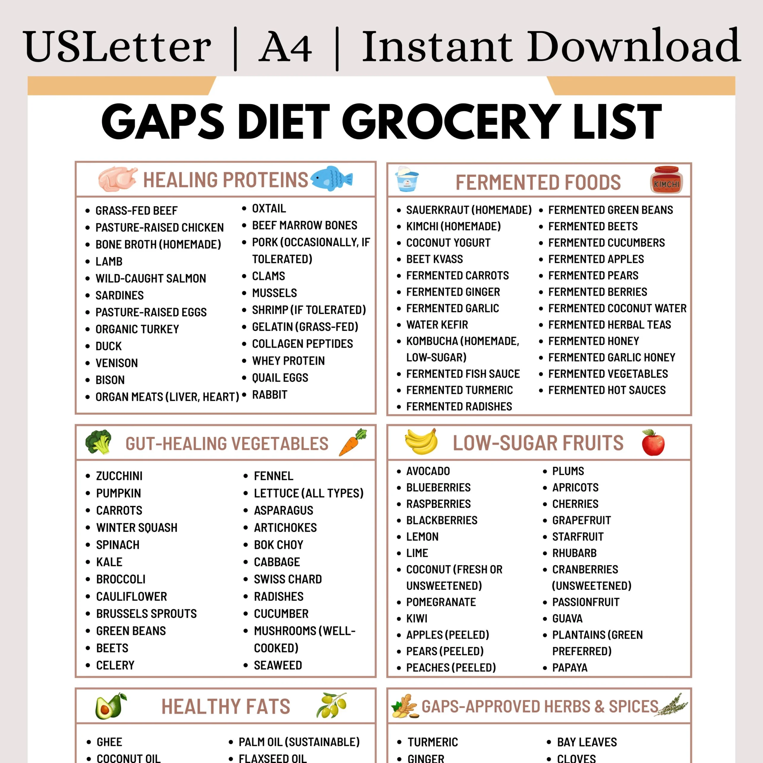 Whether you’re following the gaps diet or simply trying to eat more mindfully, having a printable list of gap-friendly foods can make your life easier. You can refer to it whenever you’re meal planning or grocery shopping, ensuring you always have nutritious options on hand.