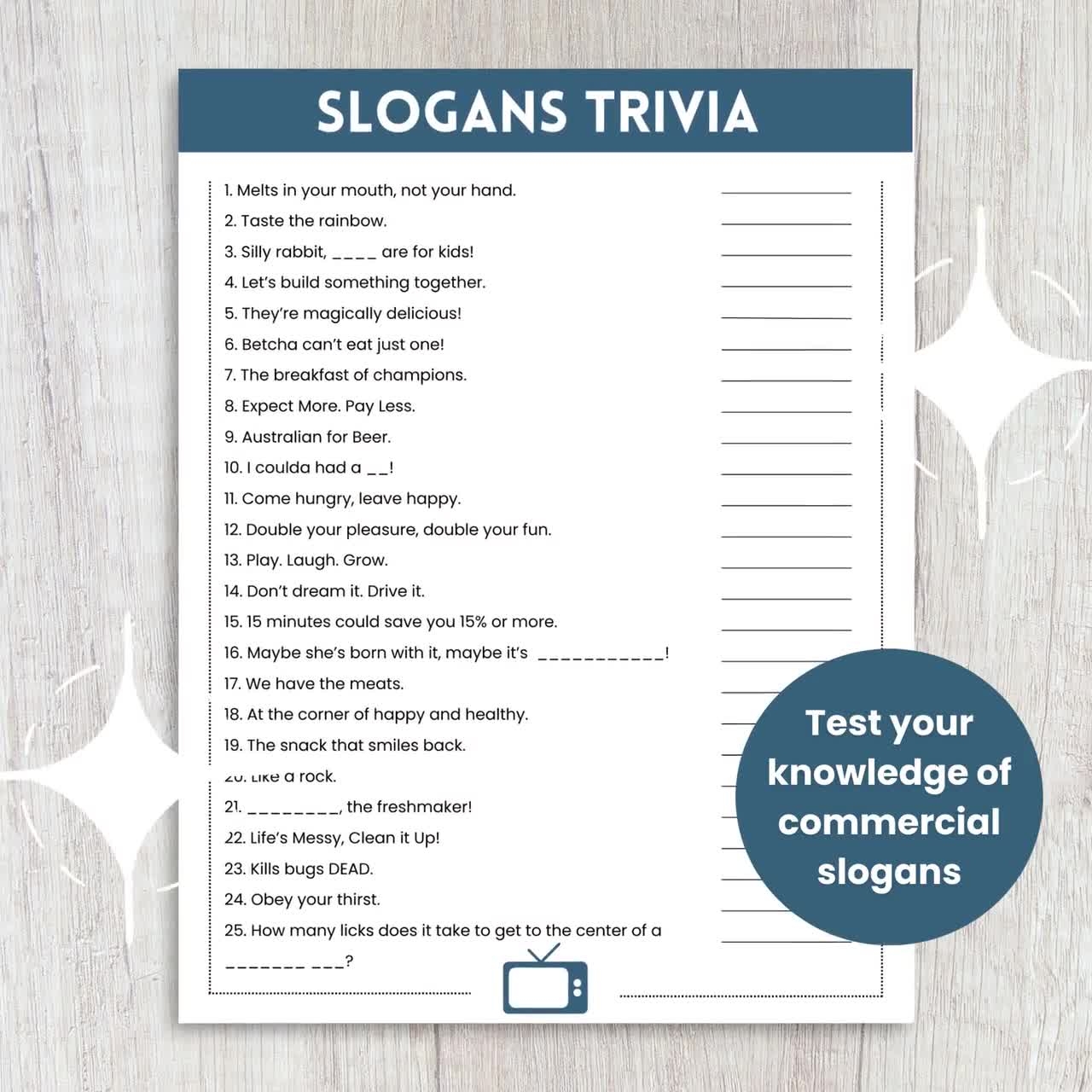 TV Commercial Trivia Game TV Slogans Trivia Game TV Commercial Match Up Ads Trivia Game Television Game Night Game Office Party Game Etsy