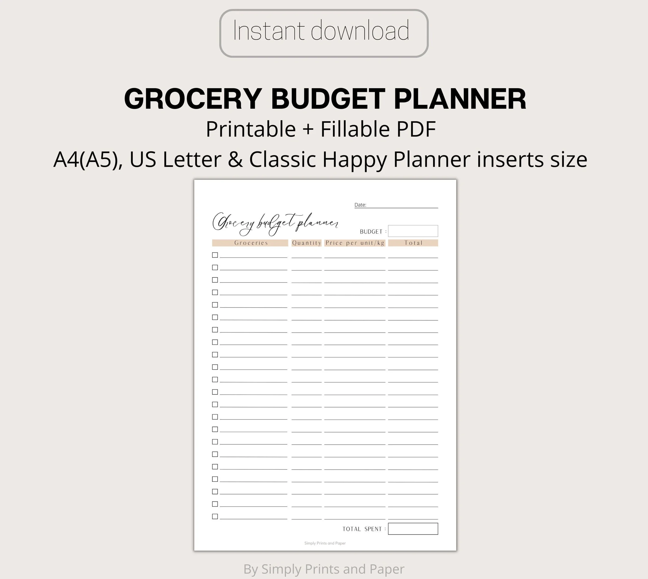 Printable Grocery Budget Planner Fillable PDF A4 US Letter Etsy